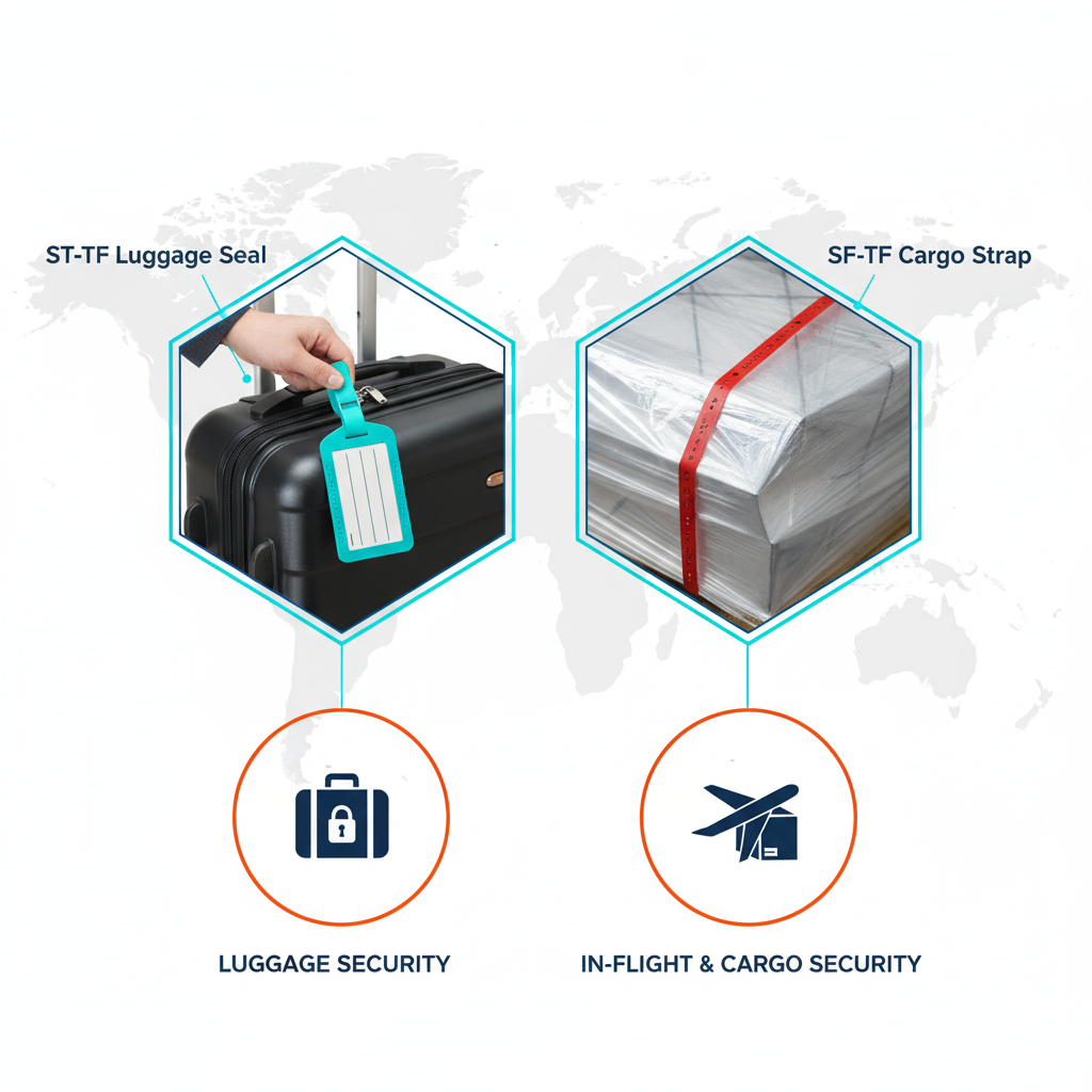 Security seals designed for baggage handling, catering, and in-flight equipment to ensure tamper-evident safety in air transport.
