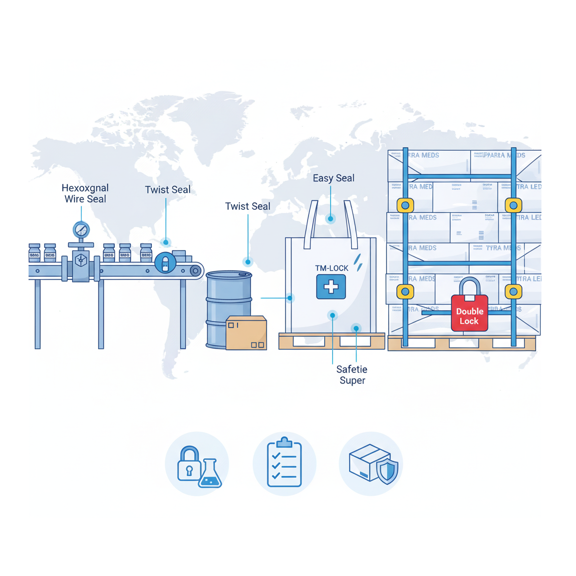 Precision seals ensuring product authenticity, patient safety, and regulatory compliance in medical and pharmaceutical distribution.